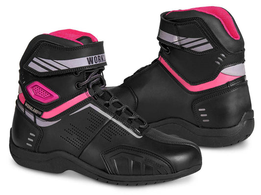 Bota mujer motociclista biker botin moto WKL 80017 Negro Roj