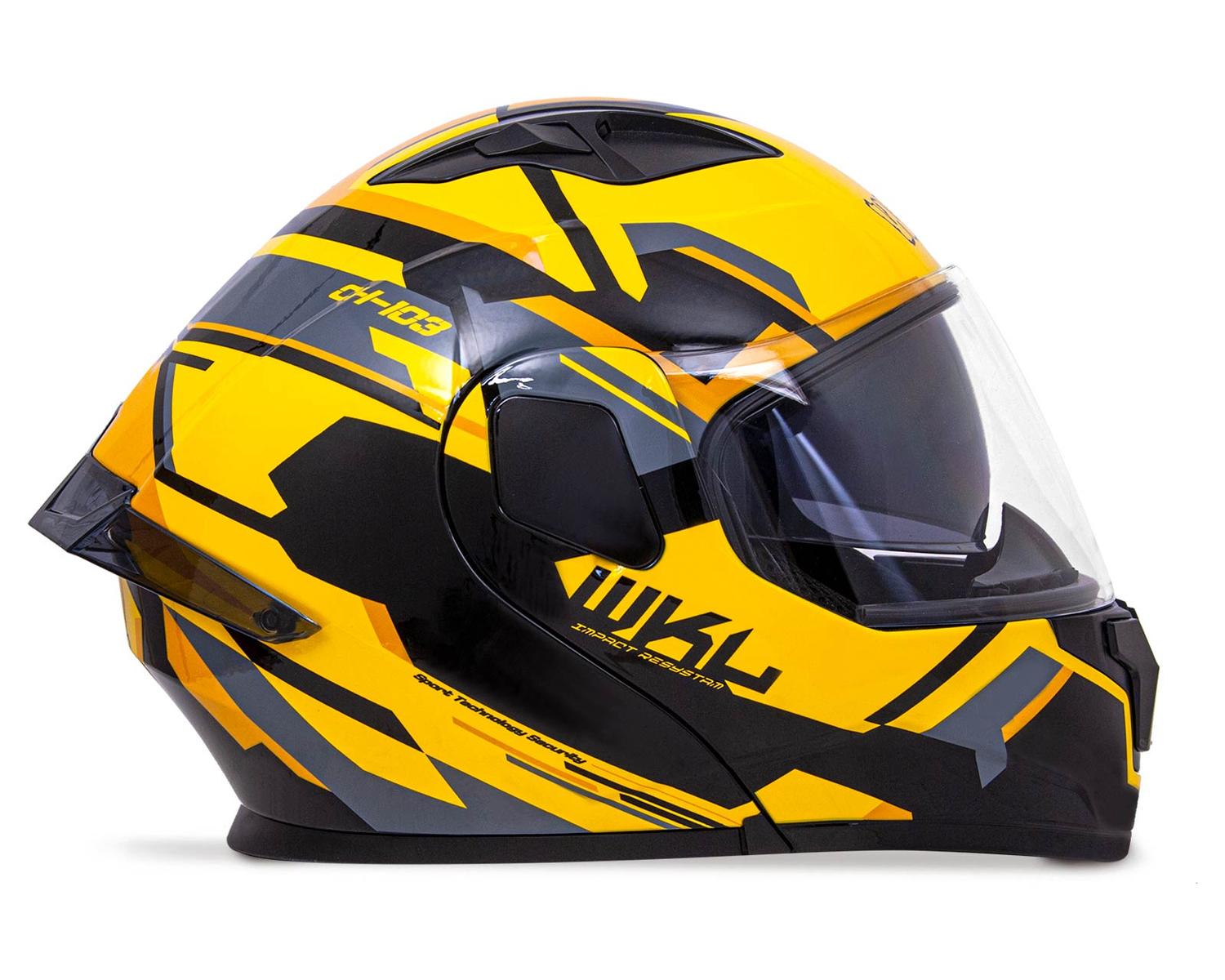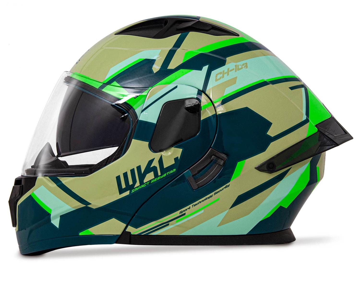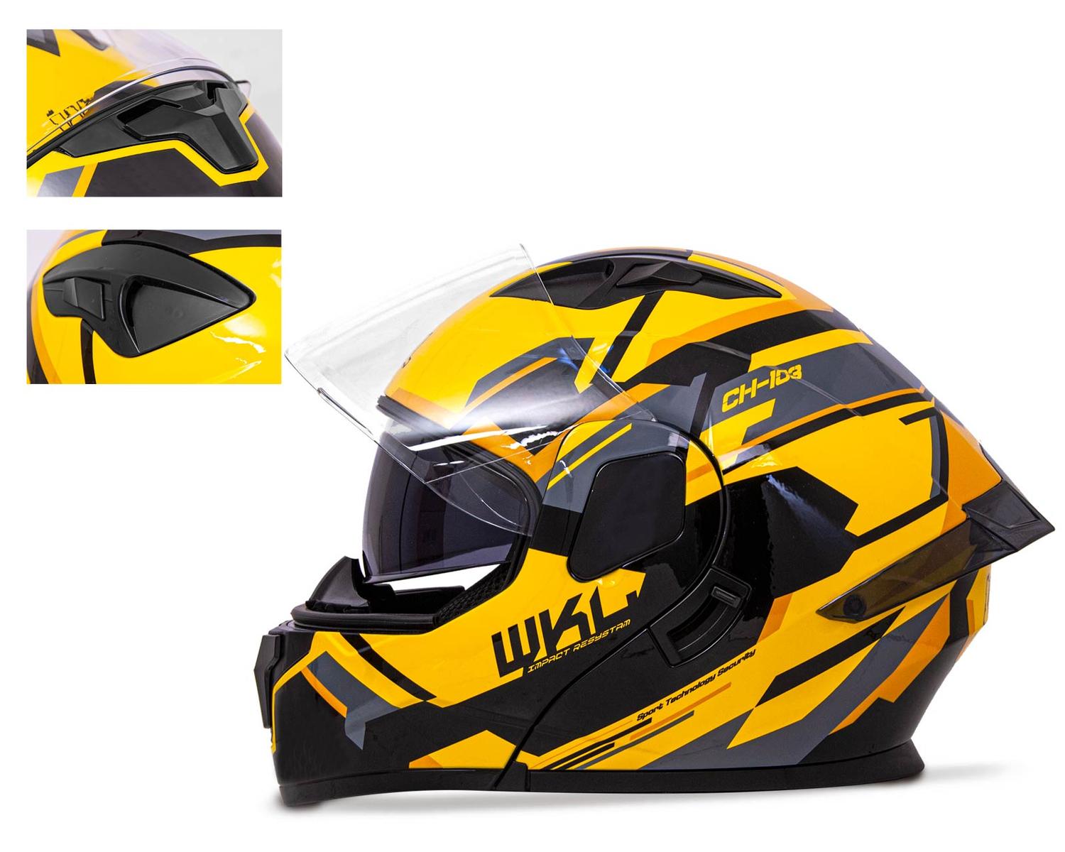 El casco abatible WKL está diseñado para brindarte la máxima seguridad sin sacrificar comodidad. Su sistema abatible permite levantar la mentonera de forma práctica, ideal para trayectos urbanos o paradas rápidas, mientras que su estructura aerodinámica garantiza un manejo estable incluso a altas velocidades.