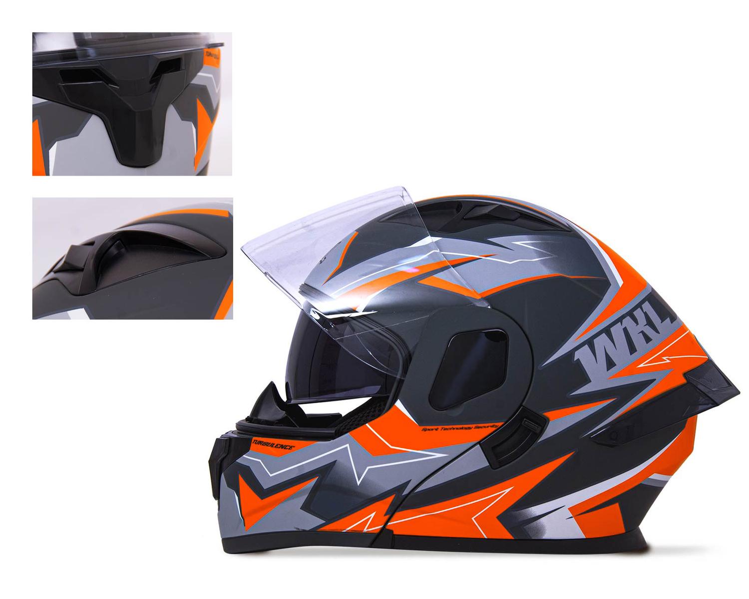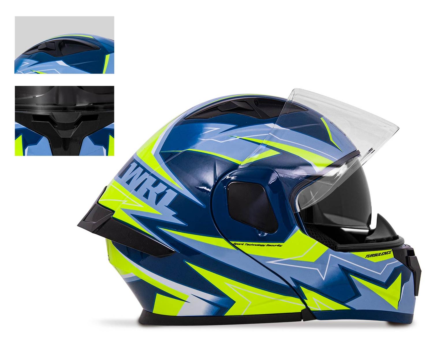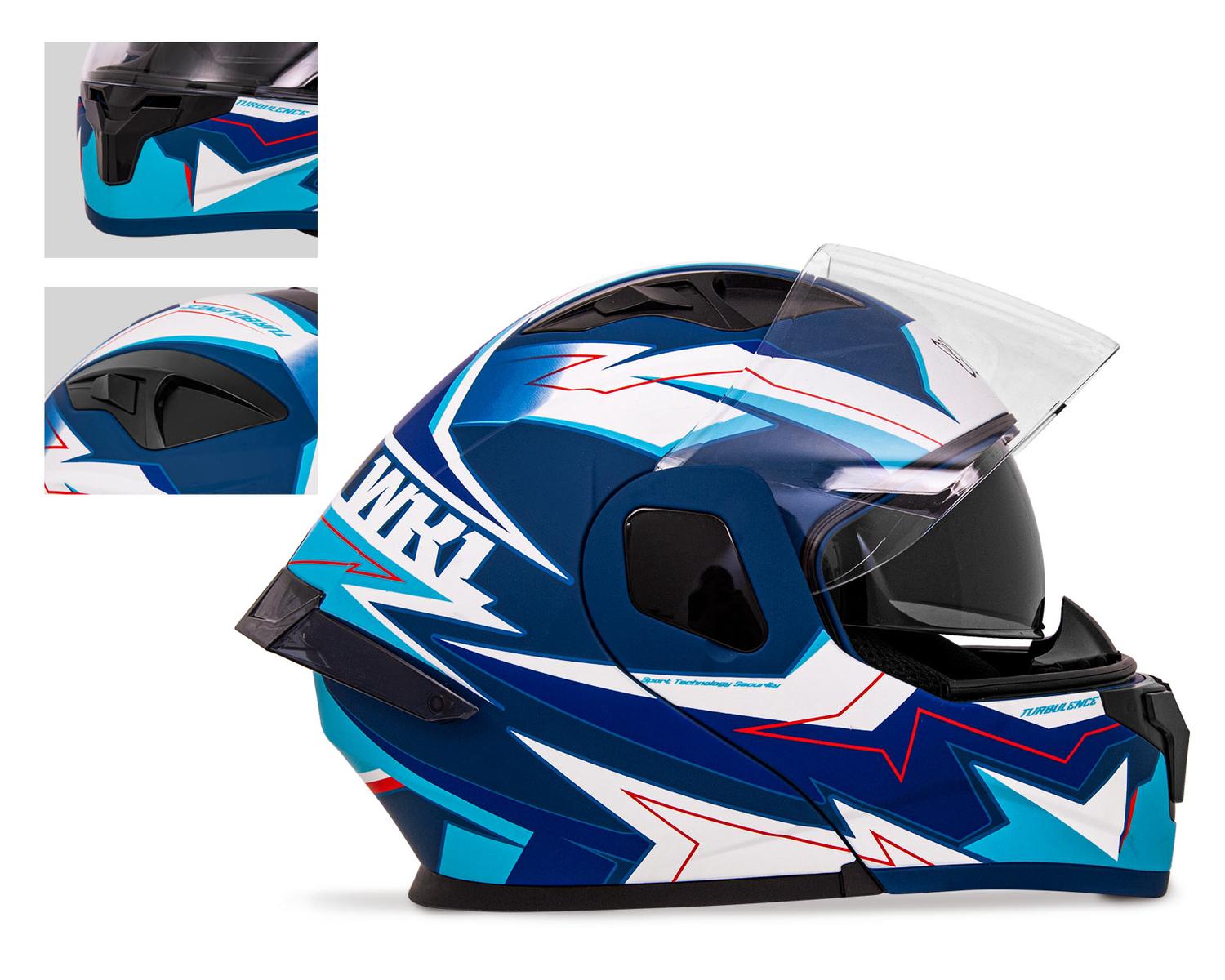 El casco abatible WKL está diseñado para brindarte la máxima seguridad sin sacrificar comodidad. Su sistema abatible permite levantar la mentonera de forma práctica, ideal para trayectos urbanos o paradas rápidas, mientras que su estructura aerodinámica garantiza un manejo estable incluso a altas velocidades.