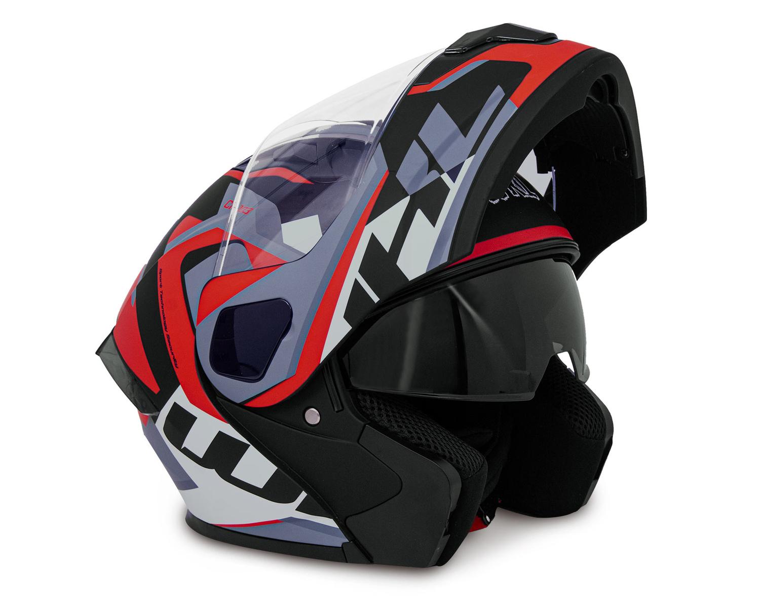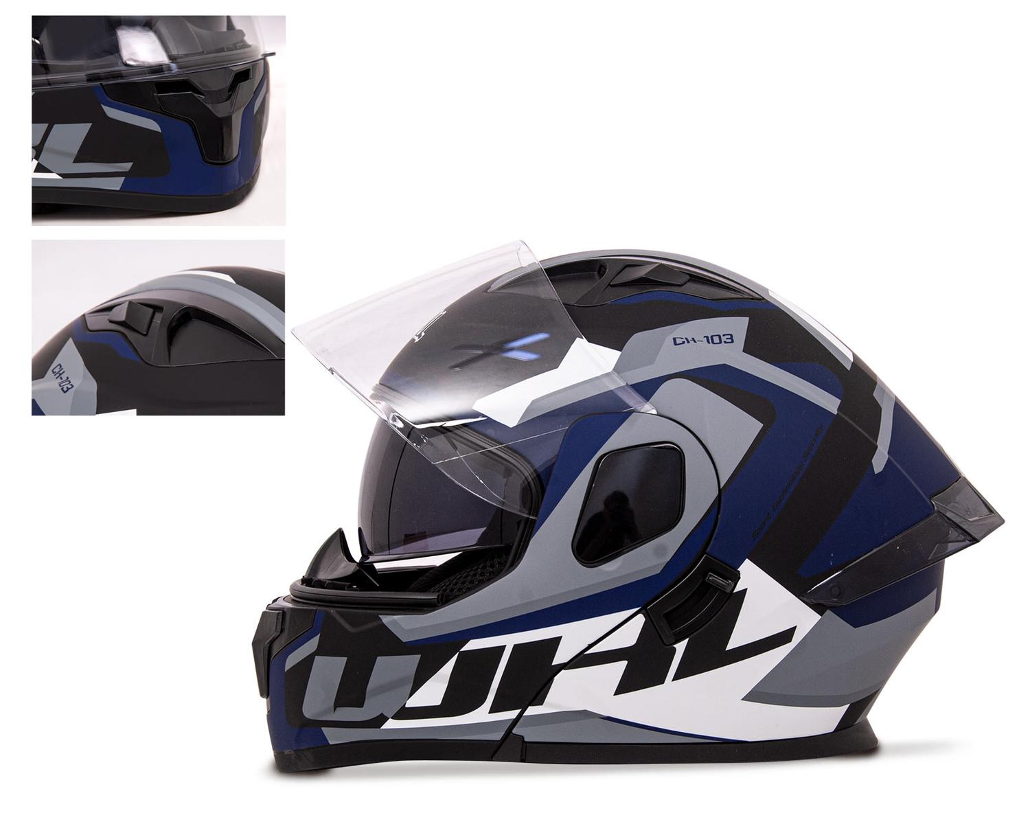El casco abatible WKL está diseñado para brindarte la máxima seguridad sin sacrificar comodidad. Su sistema abatible permite levantar la mentonera de forma práctica, ideal para trayectos urbanos o paradas rápidas, mientras que su estructura aerodinámica garantiza un manejo estable incluso a altas velocidades.