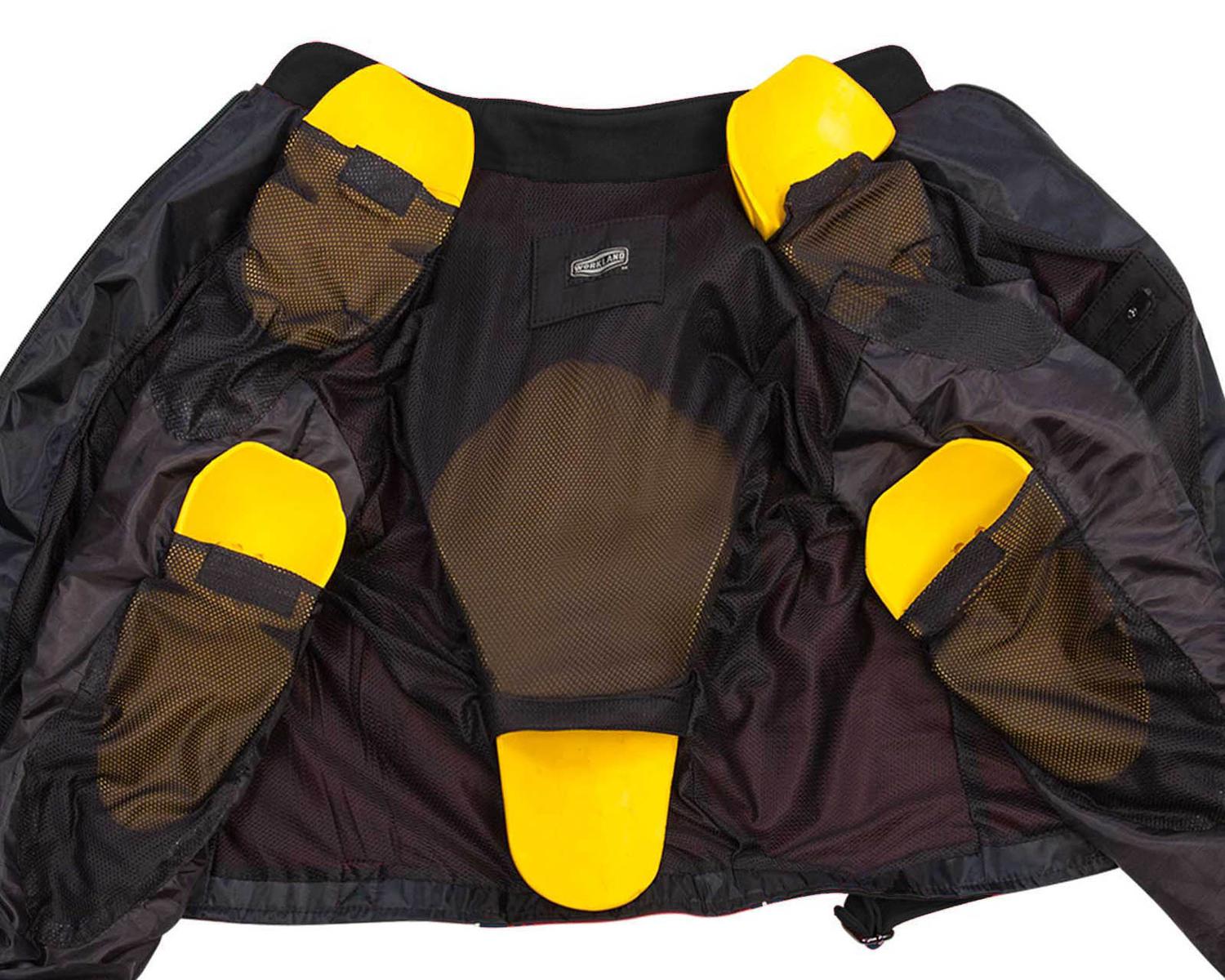 Chamarra Motociclista para mujer WORKLAND Material tela SOFTSHELL repelente al agua. Reflejantes fronatales, traseros y en brazos. Sistema AIR FLOW SYSTEM, Entradas y salidas de aire con cierre, en pecho, brazos y espalda.Bolsas laterales externas y laterales internas.Protectores CE (CERTIFICADOS) removibles INCLUIDOS en hombros, codos y espalda.Material de protectores: PU (Poliuretano)Chamarra impermeable